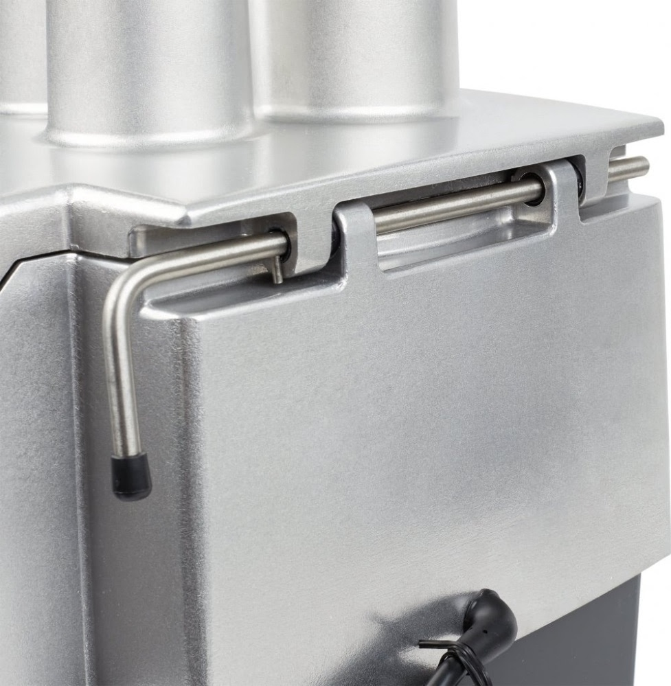 - Боковой выброс продуктов позволяет использовать приёмные ёмкости большого размера (например, GN 1/2-150) и реже забирать нарезанные продукты из ёмкости
