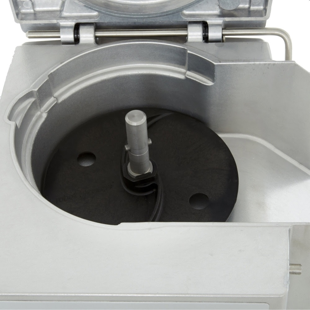 - Боковой выброс продуктов позволяет использовать приёмные ёмкости большого размера (например, GN 1/2-150) и реже забирать нарезанные продукты из ёмкости