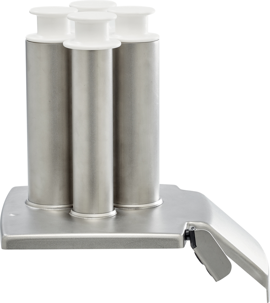 - Передвижная тележка из нержавеющей стали оснащена четырьмя колёсиками (2 из них с тормозом) для перемещения оборудования с минимальными усилиями и поворачивающимся нижним уровнем для быстрой смены приёмных ёмкостей, вмещает до 3 гастроёмкостей GN 1/1